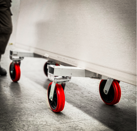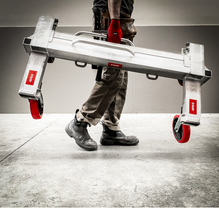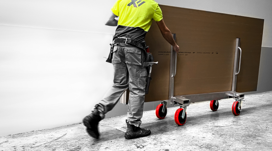 Ergonomically designed drywall cart to ensure easy manoeuvrability around the job site, able to fit through narrow spaces and in and around tight corners. They can quickly and effortlessly convert to a flatbed when required. The unit itself only weighs 22kg with a W.L.L of one ton (1000kg). The upright handles dismantle in seconds for transportation and storage and the stowed handles form a carry handle. The carts are available with two swivel lock casters.