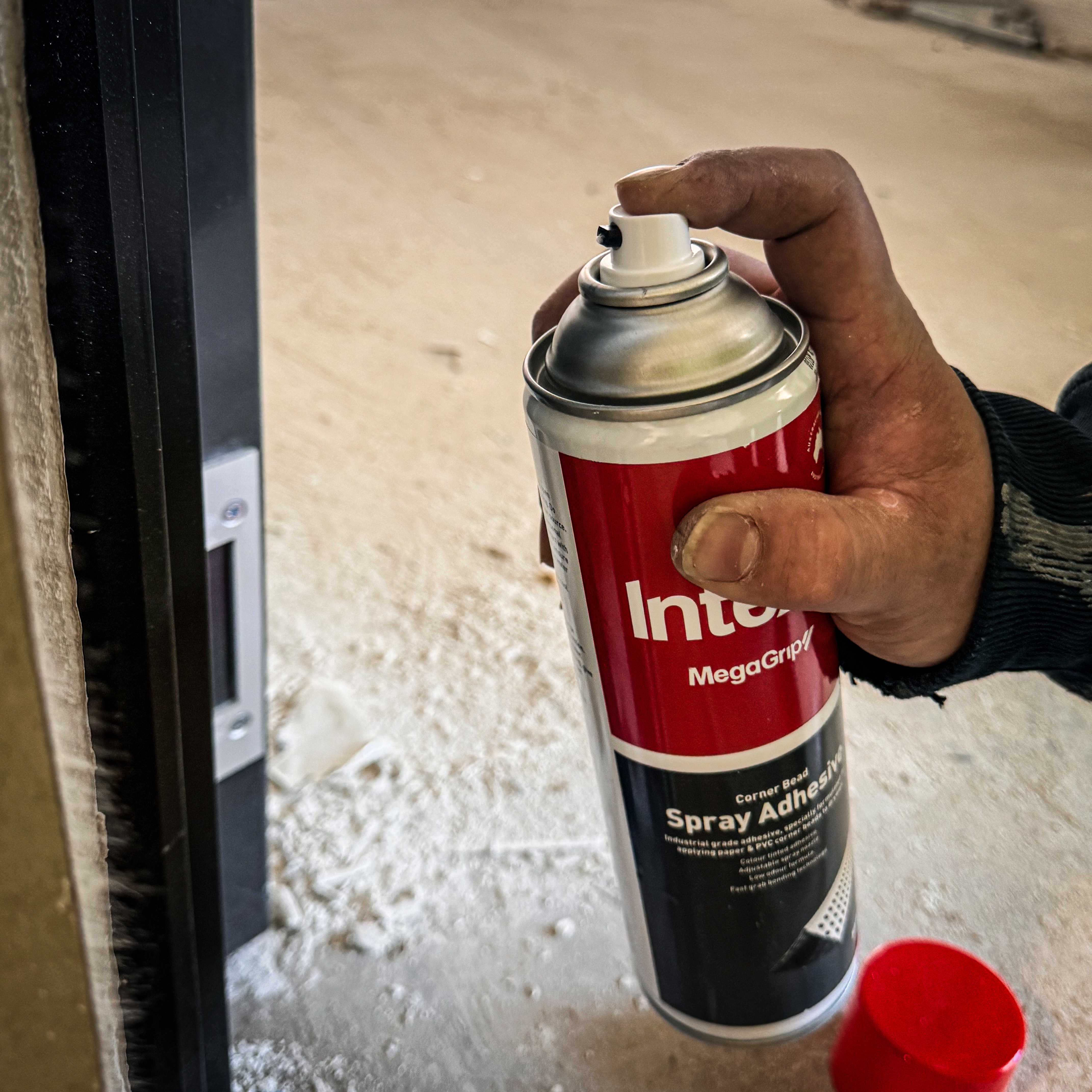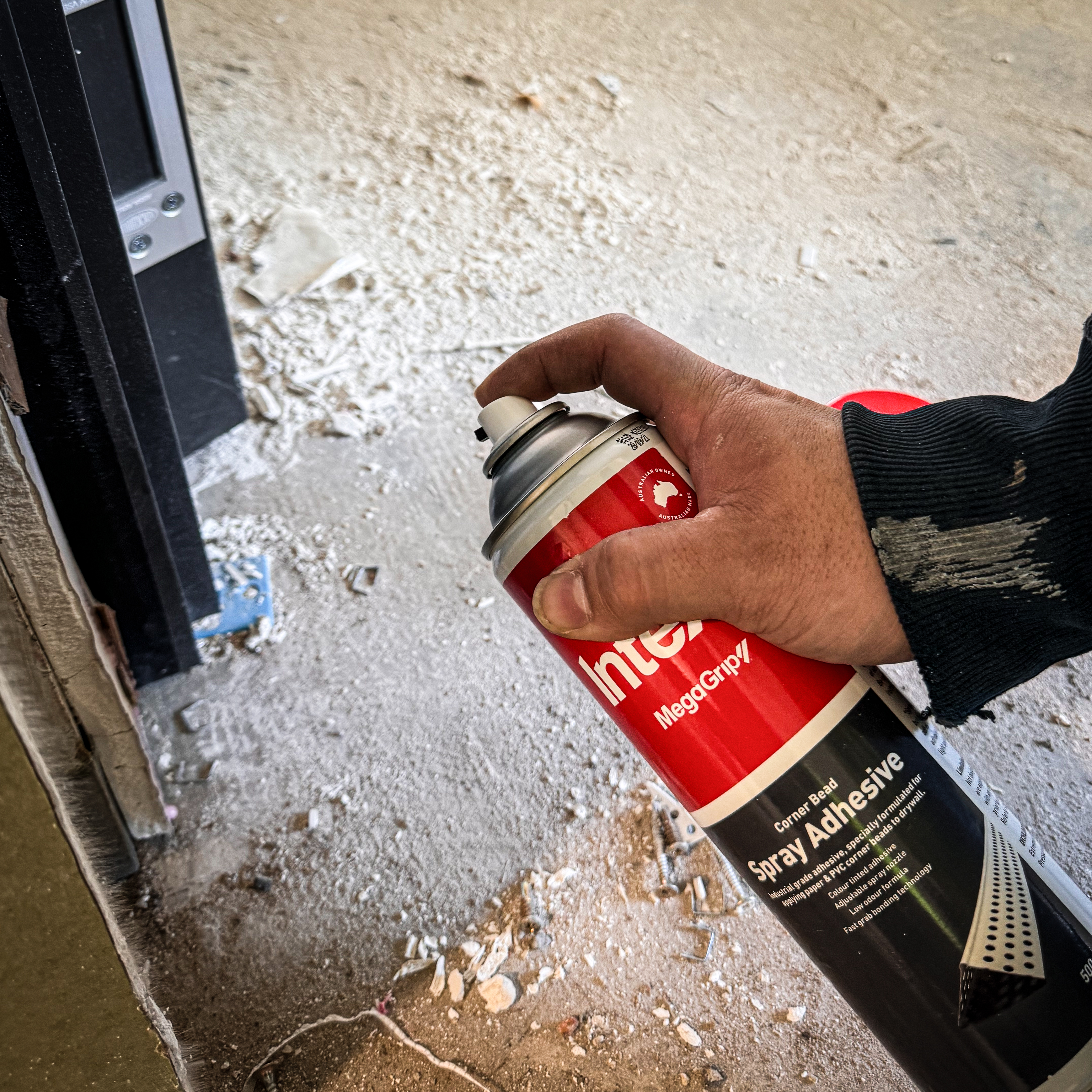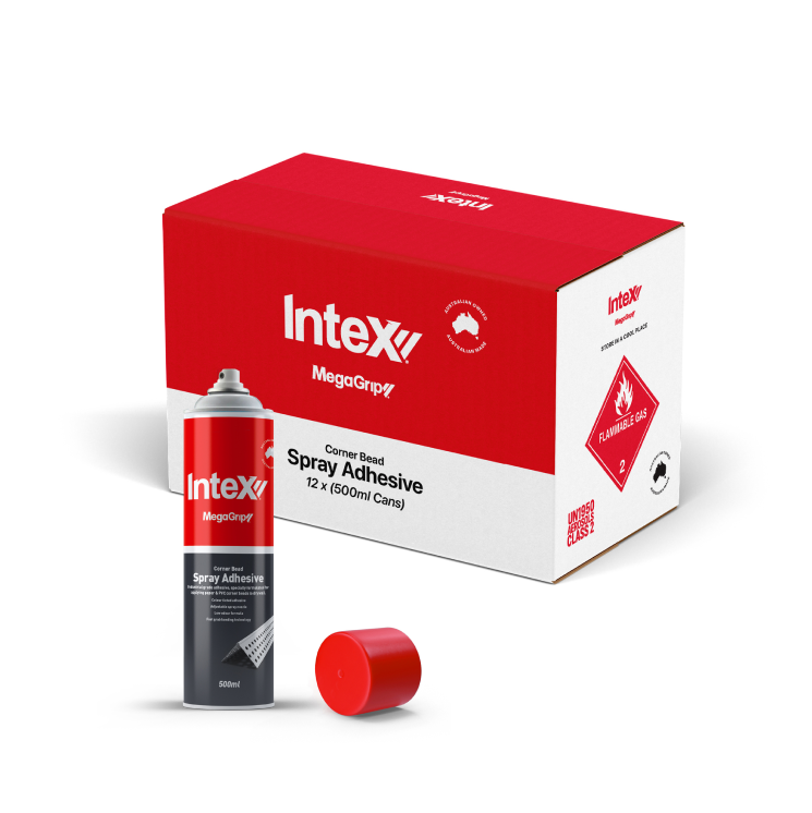 Specifically formulated aerosol for applying PVC and paper corner beads to drywall. Industrial grade contact adhesive featuring fast grab bonding technology. Suitable for use on drywall, MDF, plywood, metals and many plastic varieties. Tinted colour adhesive with an adjustable spray nozzle. Made in Australia.