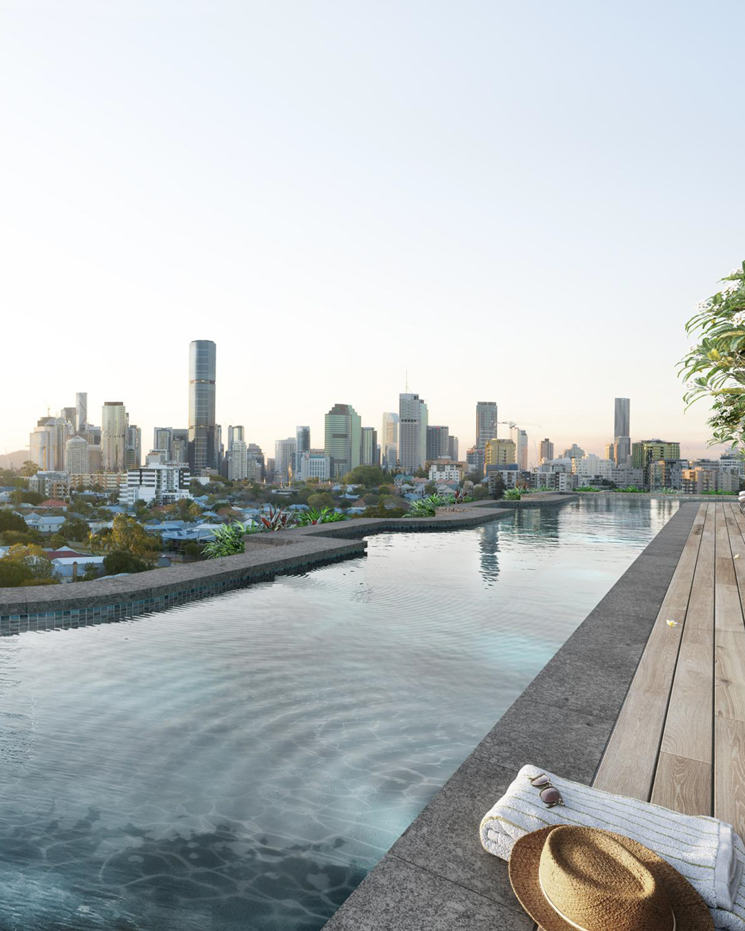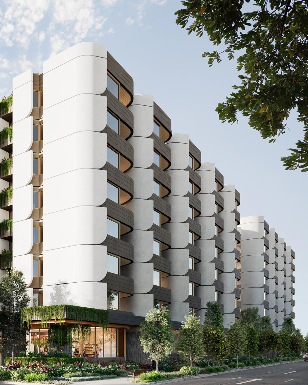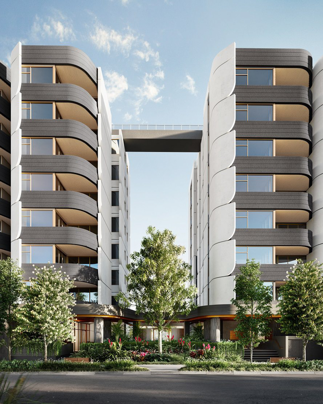This architecturally stylish development by Mosaic Property Developments features 122 two- and three-bedroom apartments, complete with high-end amenities including a rooftop pool, open-air cinema, sky bridge, wellness centre, executive lounge and ground-floor retail spaces.