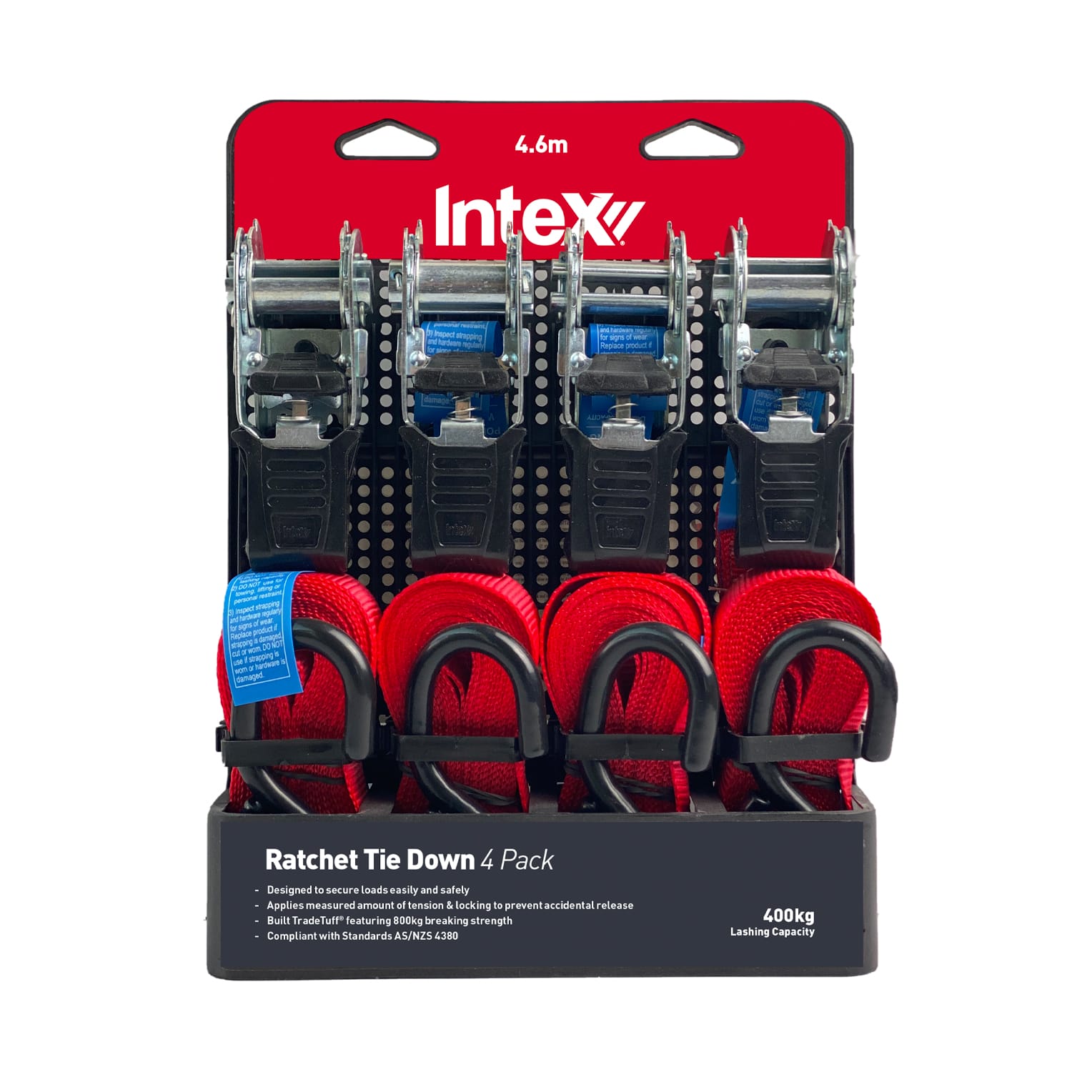 Ratchet Tie Down 400kg W.L.L 25mm x 4.6m (4 Pack)