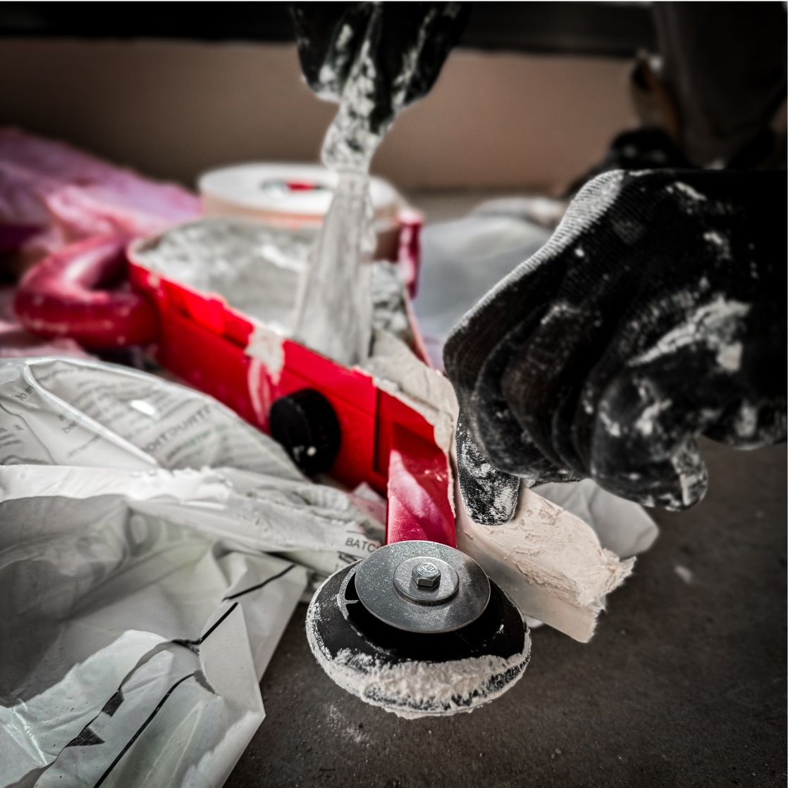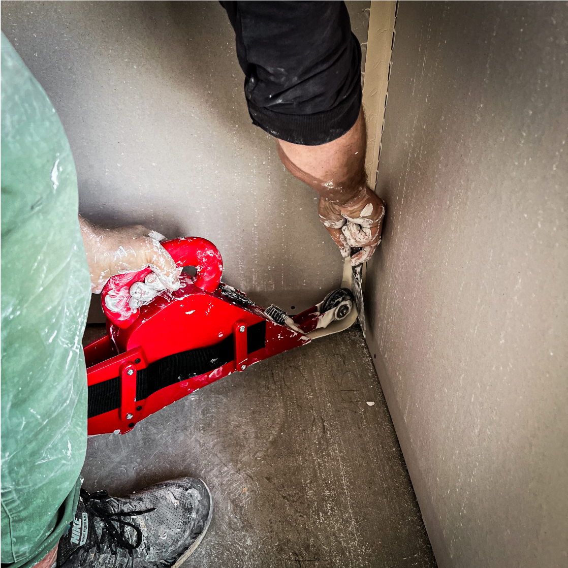 Economical tool designed to automatically apply joint tape to flat joint only and dispense the correct amount of joint compound under the tape simultaneously. The compound control knob adjusts coat thickness allowing for an accurate and consistent coat of bedding compound. Stainless steel gear wheels grip and dispense tape evenly, avoiding folds and wrinkles. High capacity, holding up to 2.5kg of the compound. Suited to joint tape rolls of up 150m. Easily disassembles with side clips for fast loading and cleaning.